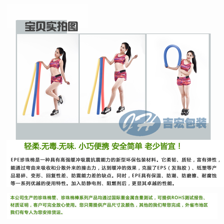 游泳棒是圓柱形珍珠棉產(chǎn)品。珍珠棉隔音、防水、化學(xué)性能穩(wěn)定、抗震。